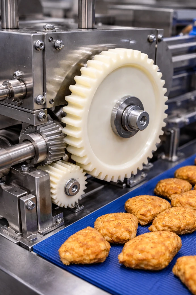 Nylon is commonly used for wear and load-bearing parts. Moisture absorption should be considered for tight-tolerance applications.
